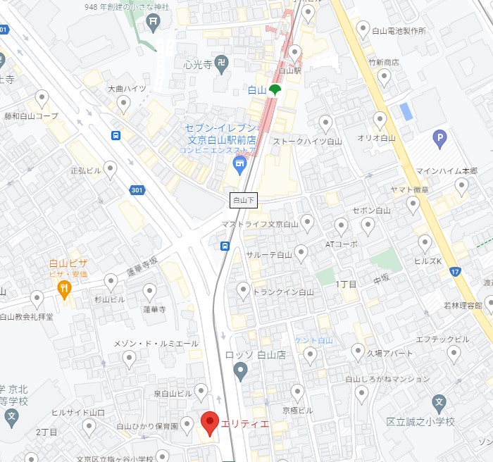 名称 エリティエ 所在地 東京都文京区白山2丁目29−6 最寄り駅 都営三田線「白山駅」徒歩5分 駐車場 なし 電話 03-3868-0512 営業時間