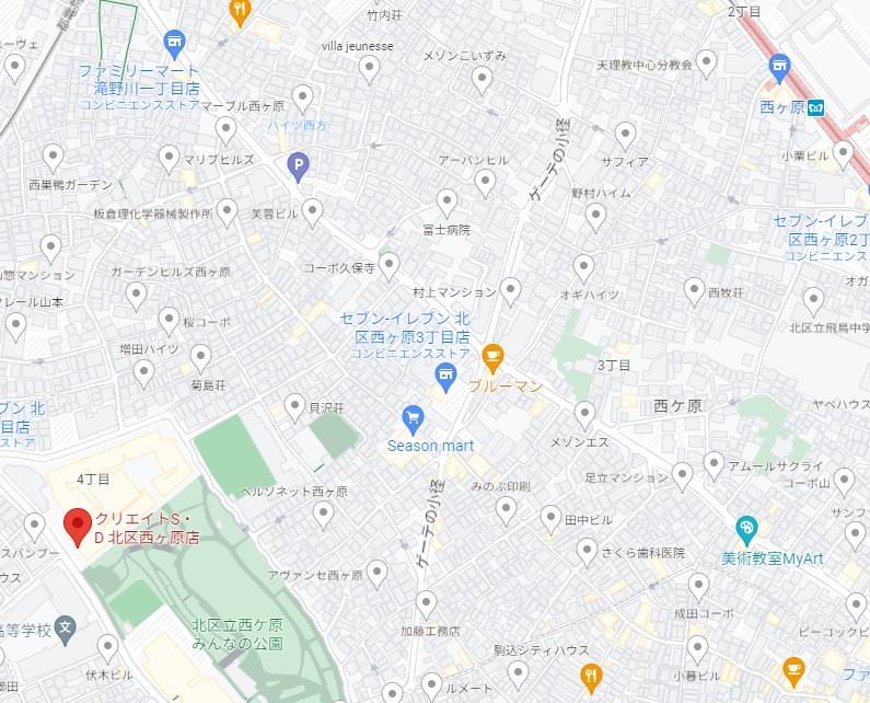 名称 クリエイトS・D北区西ヶ原店 所在地 東京都北区西ケ原4丁目51−13 最寄り駅 都営三田線「西巣鴨駅」 徒歩9分