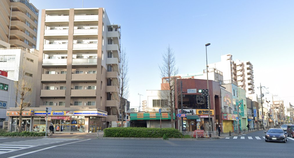 【A4出口】ミニストップ、みずほ銀行(※画像中央がA4出口)