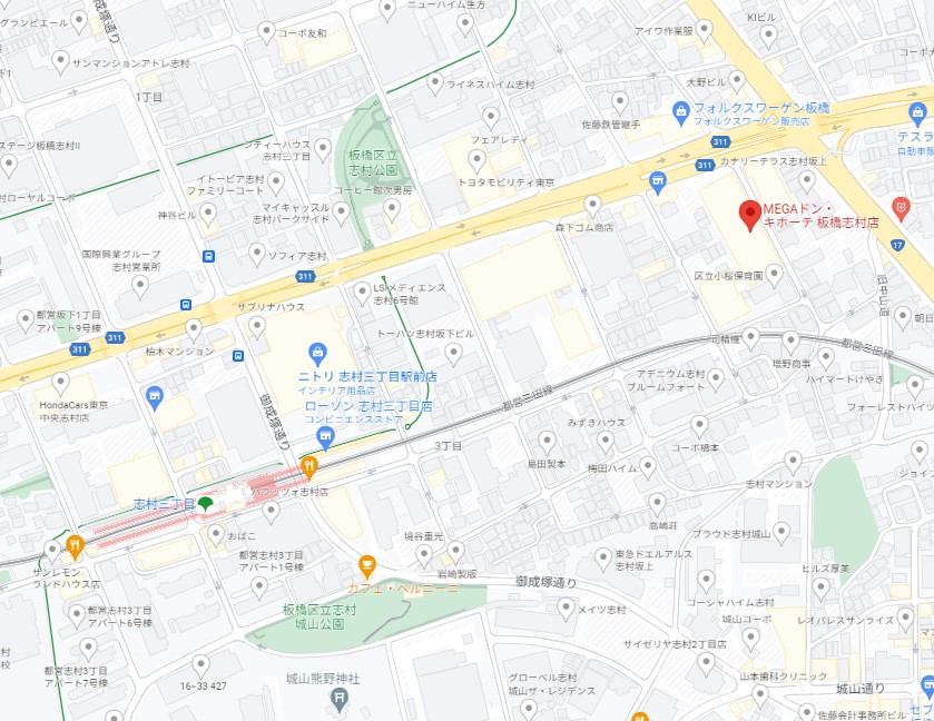 名称 MEGAドン・キホーテ板橋志村店 所在地 東京都板橋区志村3丁目32-16 最寄り駅 都営地下鉄三田線