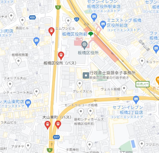 バス停は板橋区役所前駅周辺には4ヶ所あります。