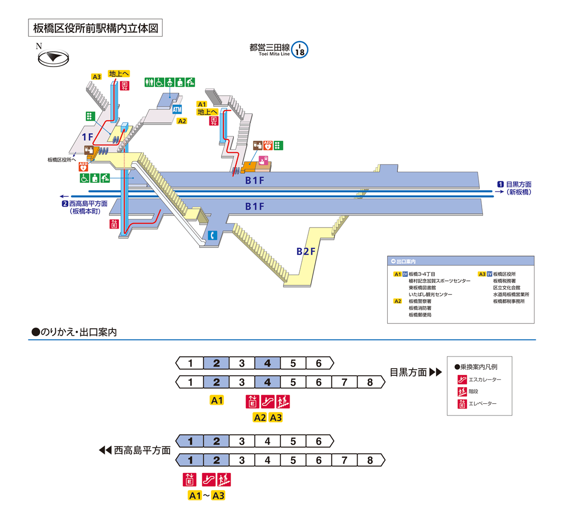 【都営地下鉄三田線 板橋区役所前駅構内図】