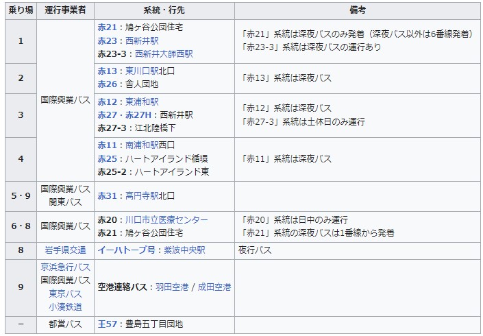 【JR京浜東北線「赤羽駅」からの乗車時間】