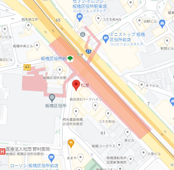 名称 松屋 板橋区役所前店 所在地 東京都板橋区板橋2丁目61−11 最寄り駅 都営三田線「板橋区役所前駅」徒歩1分 駐車場 なし 電話 080-5928-0687 営業時間
