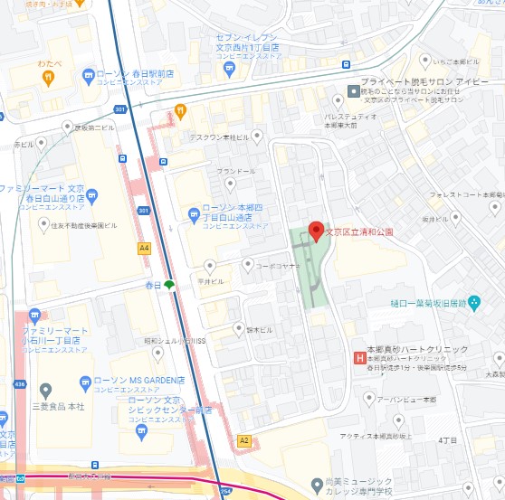 名称 文京区立清和公園 所在地 東京都文京区本郷4丁目22 最寄り駅 三田線/大江戸線「春日」駅 徒歩3分 駐車場 なし 公式URL 文京区立清和公園