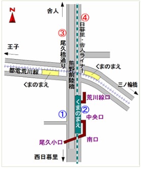 赤土小学校前駅は荒川区に属しており、JRの田端駅も徒歩圏内の為、