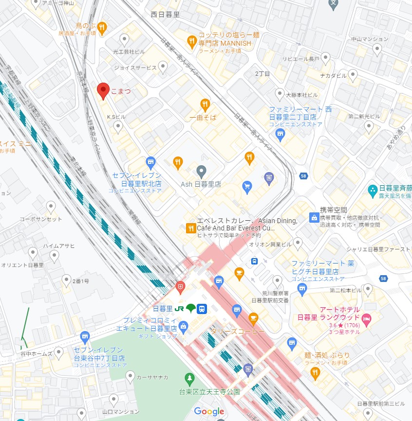 名称 こまつ 所在地 東京都荒川区西日暮里2丁目54−54−3 最寄り駅 山手線「日暮里」徒歩1分 駐車場 なし 電話 03-3891-6030 営業時間 月~金