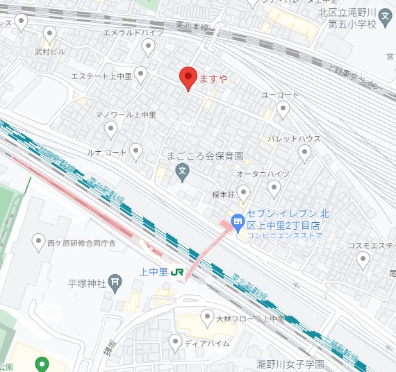 東京都北区上中里2丁目にある「ますや」のご紹介です。