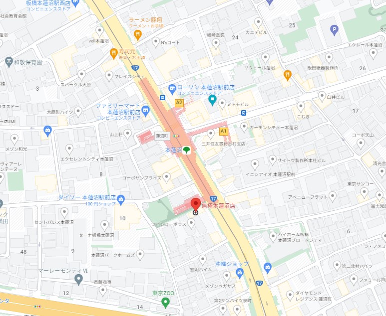 名称 無極 本蓮沼店 所在地 東京都板橋区泉町5-14 最寄り駅 都営地下鉄三田線