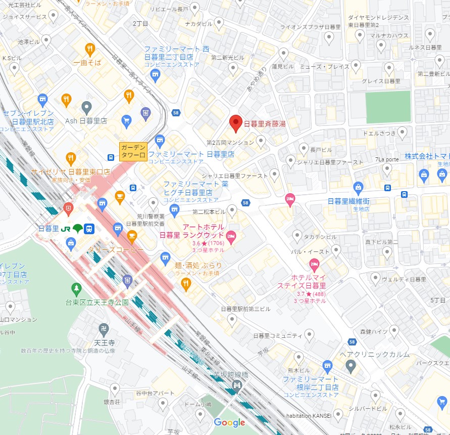 名称 日暮里斉藤湯 所在地 東京都荒川区東日暮里6丁目59−2 最寄り駅 山手線「日暮里」東口徒歩5分 駐車場 なし 電話 03-3801-4022 営業時間