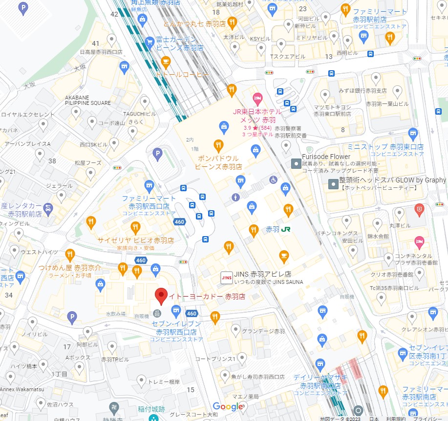 名称 イトーヨーカドー 赤羽店 所在地 東京都北区赤羽西1丁目7−1 最寄り駅 「赤羽」徒歩1分 駐車場 有り 450台 電話 03-3905-5111 営業時間