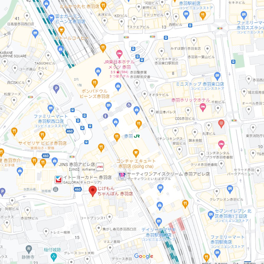 名称 じげもんちゃんぽん 赤羽店 所在地 東京都北区赤羽西1丁目4−13 最寄り駅 「赤羽」徒歩1分 駐車場 なし 電話 03-5924-9288 営業時間 11:00~22:00 公式URL https://www.jigemonchampon.com/
