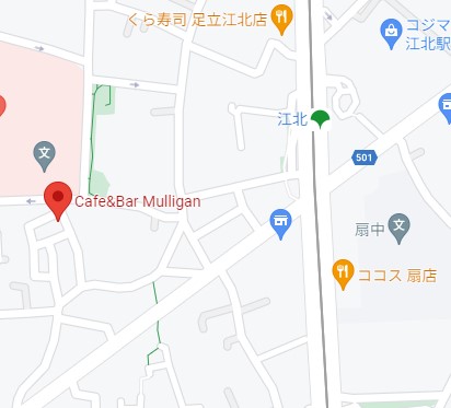 ▼江北駅周辺の賃貸物件一覧はコチラをクリック名称 Cafe&Bar Mulligan 所在地 東京都足立区江北4-7-26 最寄り駅 日暮里舎人ライナー「江北駅」徒歩3分 駐車場 無 電話 03-6803-1787 営業時間 11:00~17:00(日曜日定休) 公式URL 無