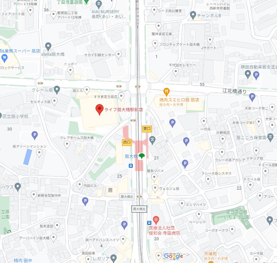 東京都足立区扇2丁目にある「ライフ扇大橋駅前店」のご紹介です