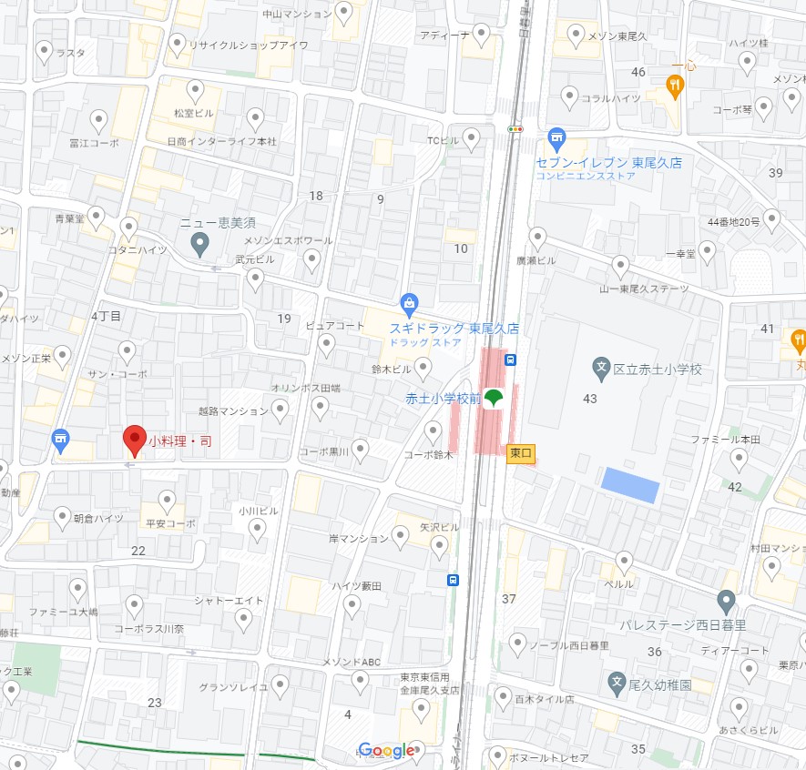 名称 小料理・司 所在地 東京都荒川区東尾久4丁目21−2 最寄り駅 日暮里舎人ライナー「赤土小学校前駅」徒歩3分 電話 03-3800-3078 営業時間