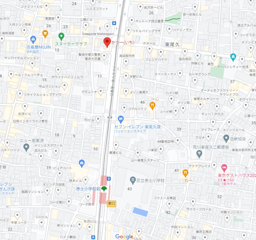 名称 かつ一 所在地 東京都荒川区東尾久4丁目11−12 最寄り駅 日暮里舎人ライナー「赤土小学校前駅」徒歩3分 電話 03-3800-0096 営業時間
